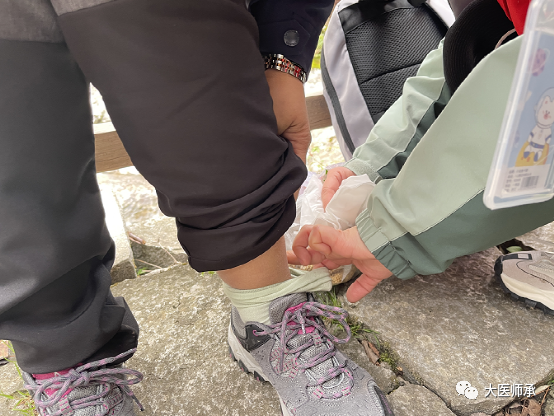 巧合的是,下山的途中,有一位同学不小心脚踝扭伤。于是现场再一次见证了中草药的神奇功效。