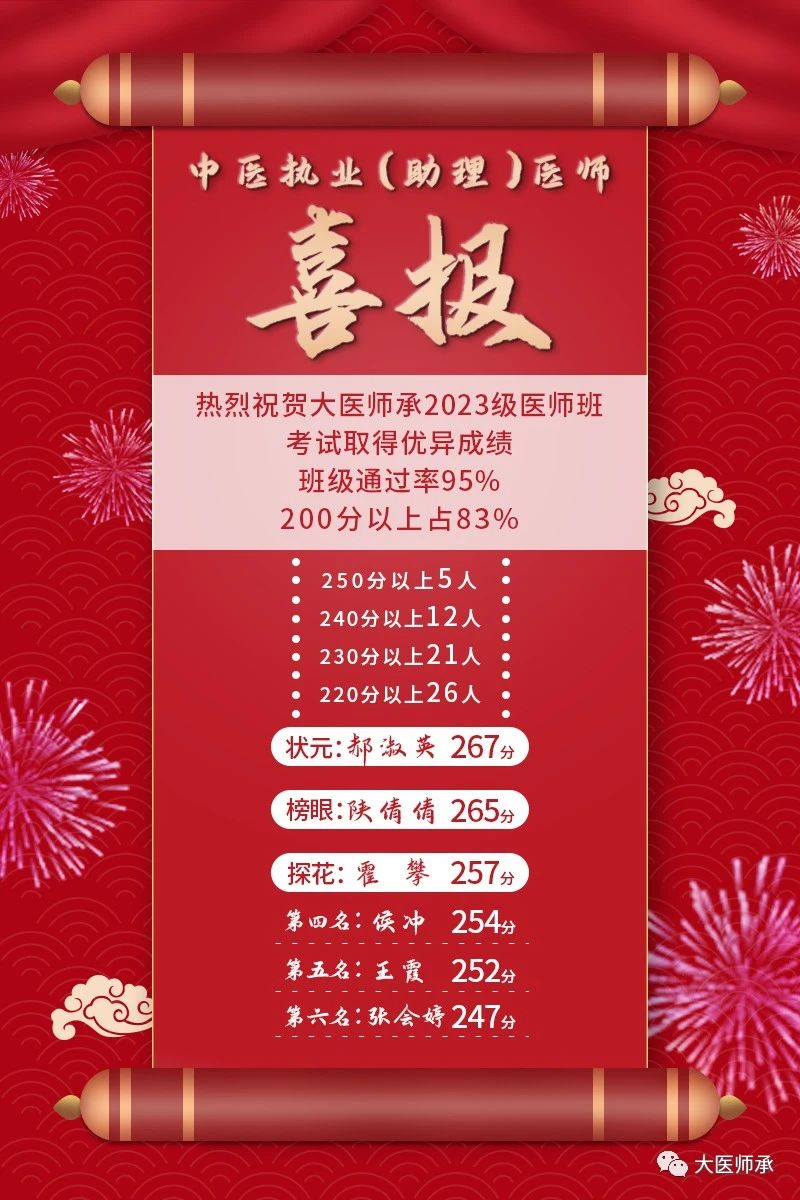 恭贺大医师承2022精品班再创优异成绩!人间最美四月天,在这个生机勃勃的季节里,大医师承2022精品班再创优异成绩!这次考试中,考区前五名大医师承占三名,通过率继续保持在90%以上。这样的成绩并非偶然,而是所有老师们日日夜夜的辛勤浇灌和同学们不断进取的结果。在这个喜悦的时刻,我们向所有通过考试的同学们表示祝贺,感谢大家......